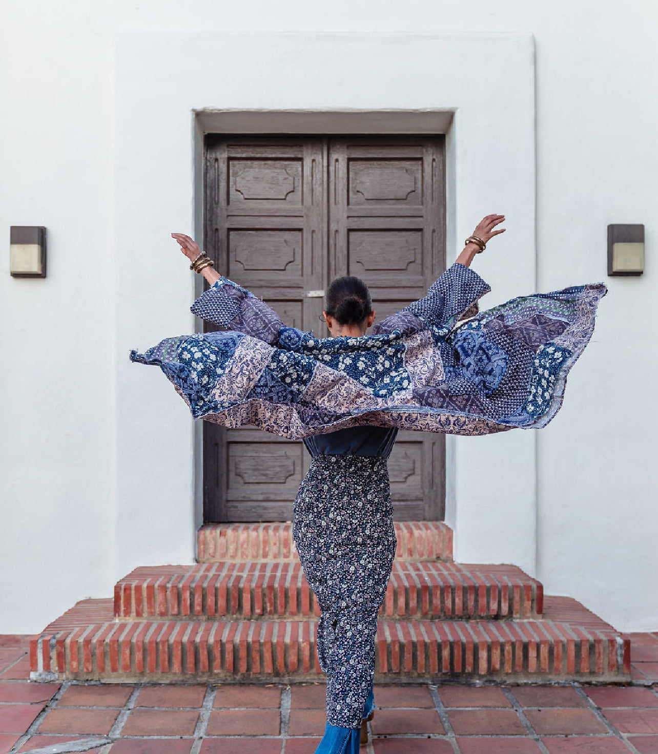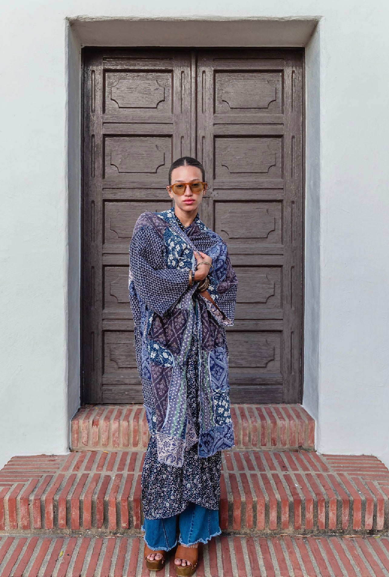 This bohemian patchwork style cotton duster is designed for effortless style and comfort. The duster is reversible, offering two distinct looks in one garment, one side showcasing the bold patchwork design, while the other side is a more subdued print.