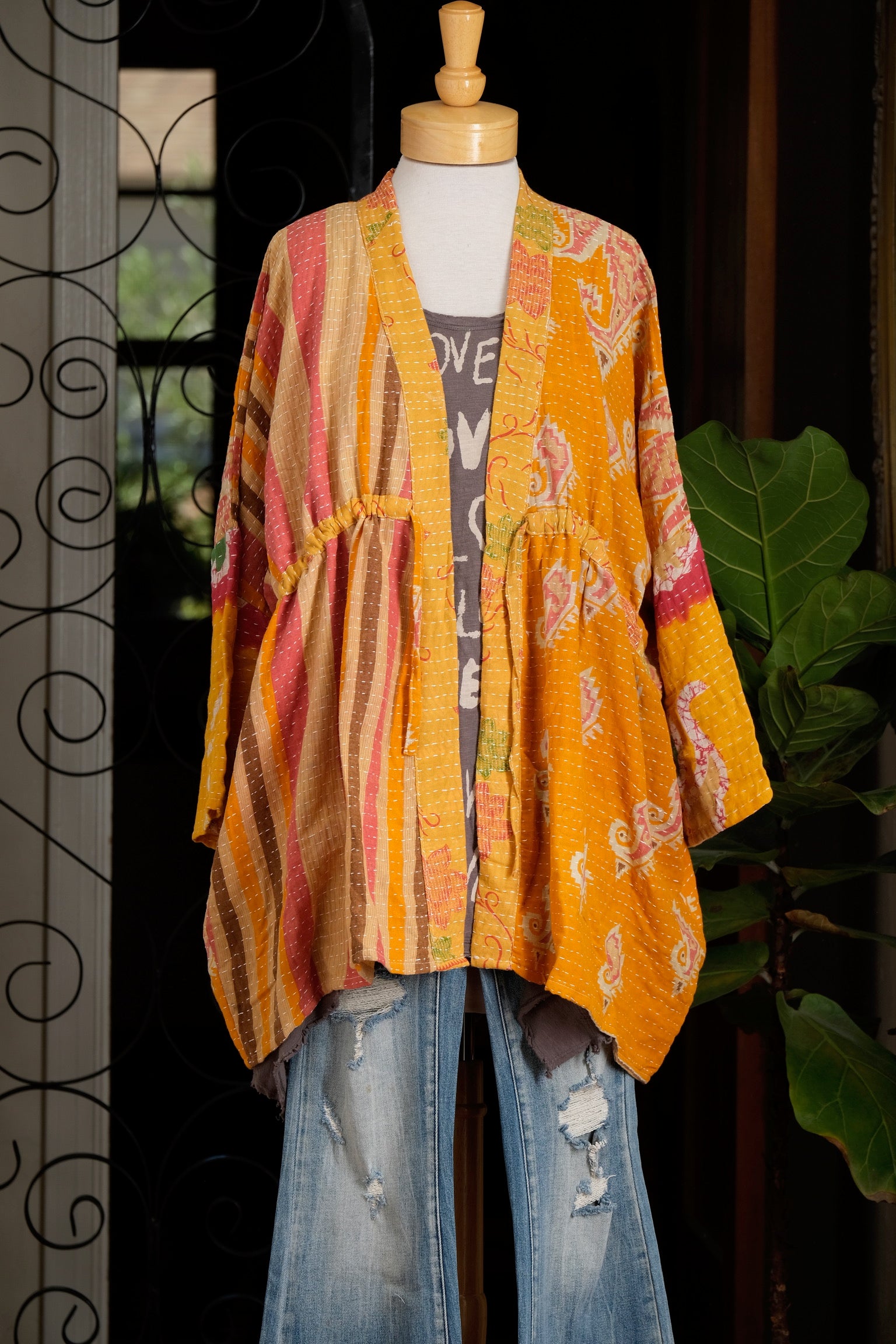 Drawstring Duster in Golden Stripe